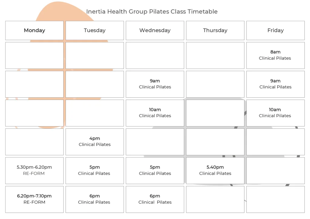 Enquire with our friendly staff about how to get started on your Pilates Journey with our Inertia Physiotherapy Team! Call 08 8359 2022 or email admin@inertiahealthgroup.com.au alternatively you may want to enquire on line here