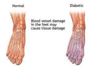 High glucose levels can cause permanent damage to blood vessels and nerves, resulting in diabetic neuropathy, which, in unmanaged severe cases, may lead to a condition called Charcot’s foot.
